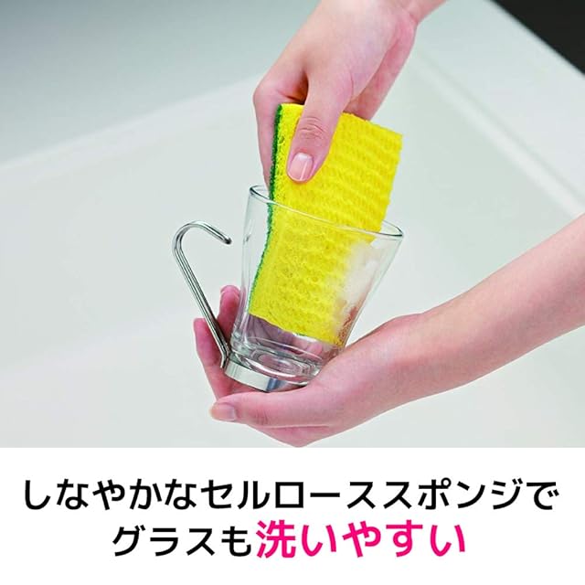 【スポンジたわしなのに、優しく洗える】しなやかなセルローススポンジで、デリケートな食器やグラスなどをキズつけずにスッキリ洗えます。