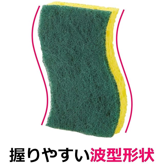 【波型で、手にしっかりフィット!】握りやすく洗いやすい波型スポンジたわし。しなやかなセルロースが手になじみ、フィットします。