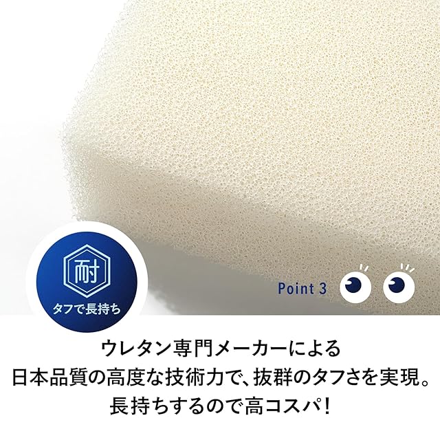 性能1:洗剤を使う際、ウレタンの目が細かいため、きめ細かな泡が立ちます。