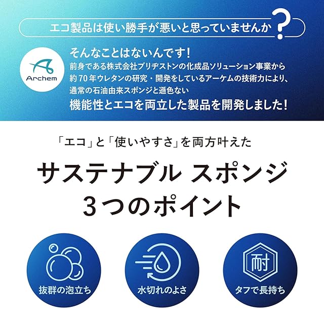 特徴:「エコ」と「使いやすさ」を両立した、サステナブルなキッチンスポンジです。