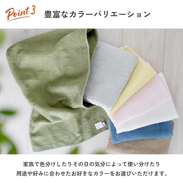 今治タオルと想像するとその薄さにびっくりするかもしれませんが、吸水性はバッチリ。厚いタオルが苦手な人や嵩張らない今治タオルが欲しい人にぜひ使ってみて欲しい商品です。