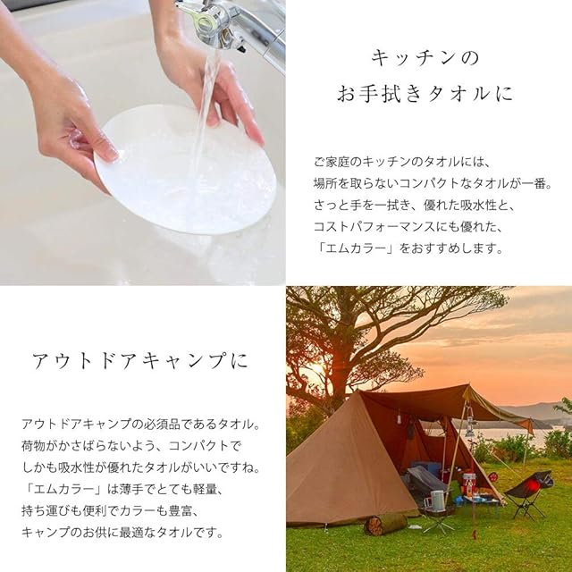 <p>【エムカラー 全100色】<br />エステサロンや医療機関用に、豊富なカラーバリエーションで作られた、やや薄手のフェイスタオルです。綿100%のやわらかな生地で吸水性がよく、日常の生活で扱いやすいタオルです。部屋干しにも適した速乾性の高いタオルですので、スポーツ・レジャーシーンをはじめ、アウトドアや旅行のお供にも最適です。また軽量薄手のタオルですので、お風呂上りに頭に巻いたり様々な使い方ができます。</p><p>【水を吸う 何度も洗う すばやく乾き、かさばらない】<br />くりかえし何度も使われる業務用タオル。現場のプロの声を集めて開発された村上タオルの「エムカラー」は、過酷な環境にも耐える高耐久性タオルです。</p><p>【信頼の今治ブランド】<br />11項目の厳しい検査基準がある今治タオル。「エムカラー」は全ての項目をクリアした高品質なタオルとして認定を受けています。また、良質な天然水で丁寧に晒すことでしなやかな柔らかさと肌触りを実現しました。</p><p>【豊富なカラーバリエーション】<br />創業から100年、ホテル・旅館や医療機関、エステサロンなどの様々な業種にお愛顧いただいてきた業務用タオル。店内設備やコーポレートカラーに合わせた、様々なカラーをご用意致しました。</p><p>【プロ用のエステタオル】<br />プロのニーズに合った業務用タオルを・・。長年開発してきた、実用性を最優先とする業務用タオルの最高峰が「エムカラー」。リーズナブルな価格でありながら日常使いとしても、とても便利なタオルです。</p><p>【キッチンのお手拭きタオルに】<br />ご家庭のキッチンのタオルには、場所を取らないコンパクトなタオルが一番。さっと手を一拭き、優れた吸水性と、コストパフォーマンスにも優れた、「エムカラー」をおすすめします。</p><p>【アウトドアキャンプに】<br />アウトドアキャンプの必須品であるタオル。荷物がかさばらないよう、コンパクトでしかも吸水性が優れたタオルがいいですね。「エムカラー」は薄手でとても軽量、持ち運びも便利でカラーも豊富、キャンプのお供に最適なタオルです。</p>