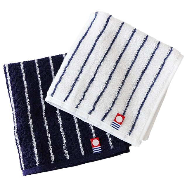 imaa(アイマ) 今治タオル 認定 ハンドタオル タオルハンカチ 2枚 セット 日本製 綿100% 02 ネイビーxホワイト