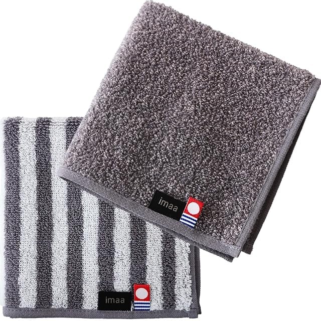 imaa(アイマ) 今治タオル 認定 ハンドタオル タオルハンカチ 2枚 セット 日本製 綿100% 15 シマシマグレーxMグレー