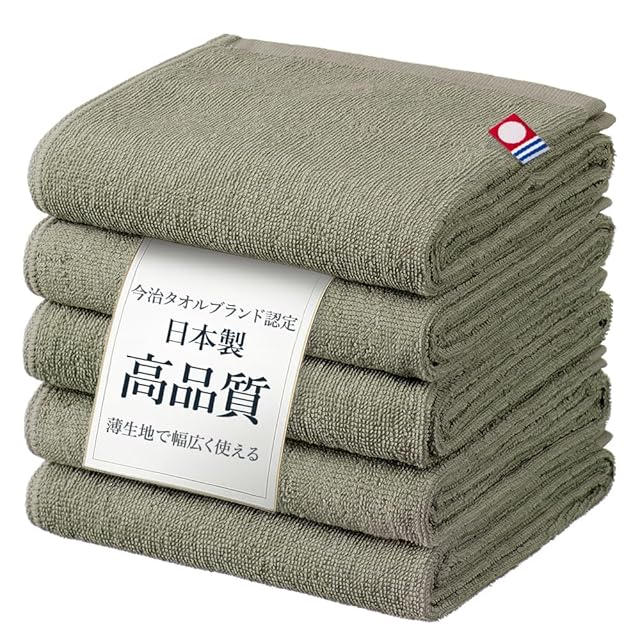 今治タオル 日本製 フェイスタオル コットン100% 約75g(240匁) 34×86cm 5枚セット セージ [ 今治フェイス フェイシャル エステ 洗顔 業務用 ホテル ホテル仕様 耐久性 今治 国産 ]