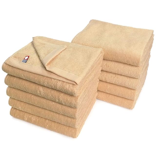 【カラー】No.61イエローベージュ 10枚セット【フェイスタオルサイズ】約34x86cm、最高級綿100%【重さ】240匁(約75g)