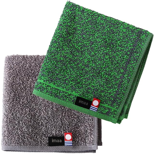 imaa(アイマ) 今治タオル 認定 ハンドタオル タオルハンカチ 2枚 セット 日本製 綿100% 17 Mグレーxグリーン