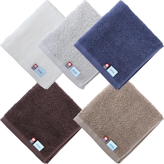 imaa(アイマ) 今治タオル 認定 ハンドタオル ふわふわ 薄手 吸水速乾 日本製 綿100% 34cm×35cm 真空圧縮パック Aアソート5枚