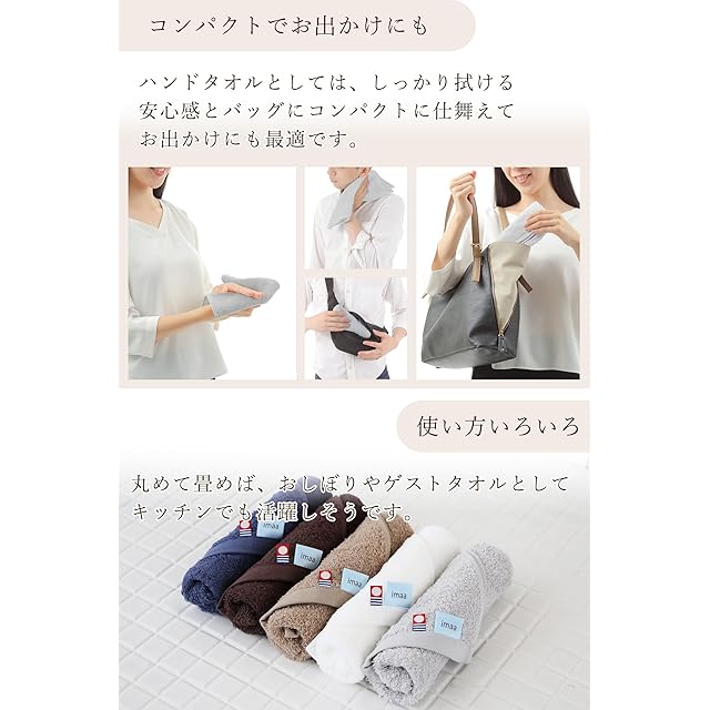 ハンドタオルとしては、しっかり拭ける安心感とバッグにコンパクトに仕舞えてお出かけにも最適です。