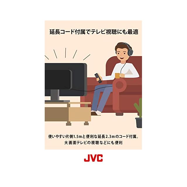 商品名:JVCケンウッド JVC HA-RZ510 ヘッドホン 有線 密閉型 ステレオ ブラック 室内用(テレビ・ゲーム向け) 1.2m+延長2.3mコード付き