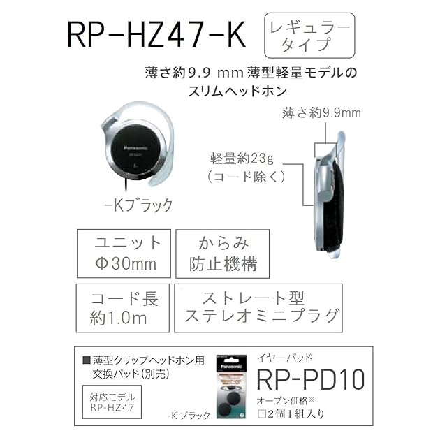 商品名:Panasonic クリップヘッドホン ブラック RP-HZ47-K