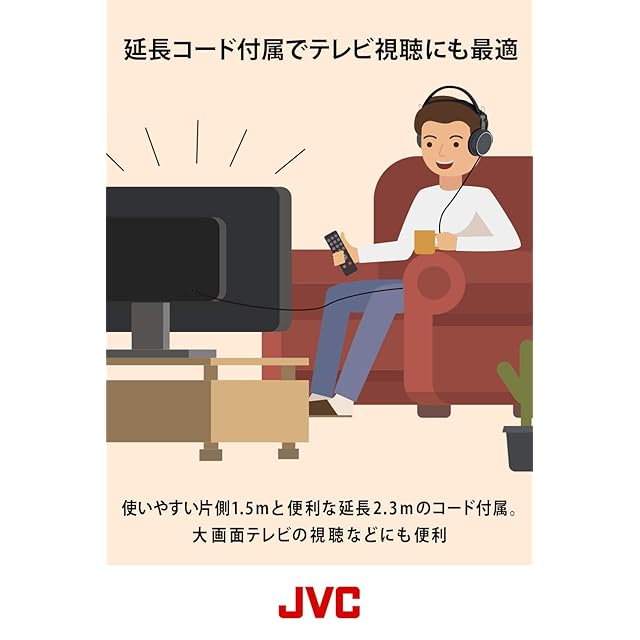 商品名:JVC HA-RZ710 密閉型ステレオヘッドホン 室内用(テレビ・ゲーム向け) 1.2m+延長2.3mコード付き