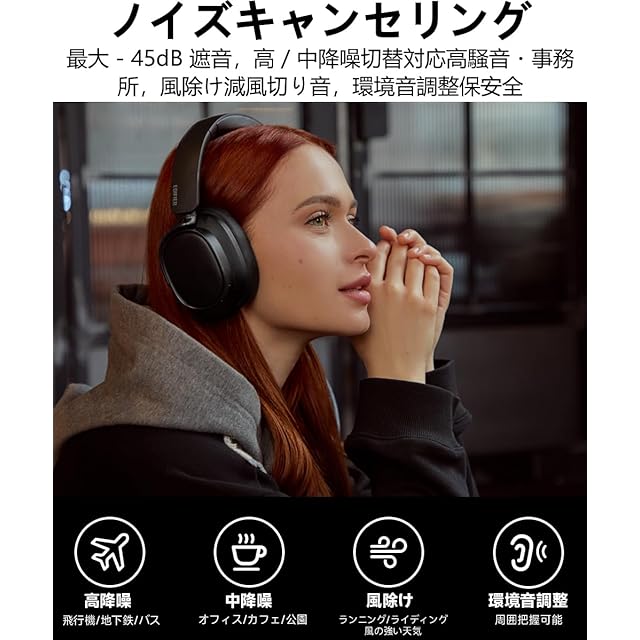 ハイブリッド ANC による最大 - 45dB 強力騒音遮断(耳圧最適化付き): 日本 JEITA 協会基準の耳圧≤0.3Pa を達成しつつ、ハイブリッド ANC 技術で最大 - 45dB の騒音を遮断。地下鉄(85dB)では人の声を 15% 以下に抑制し、オフィスのエアコン音(60dB)をほぼ完全にカットし、風除けモードで自転車通勤時の風切り音も効果的に低減。