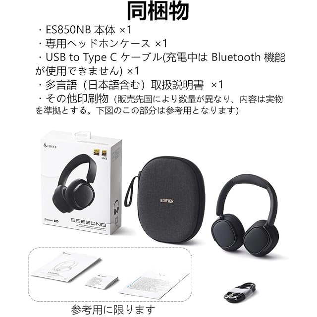 Edifier(エディファイア) ES850NB ノイズキャンセリング ヘッドホン Bluetooth LDAC/AAC 対応|Hi-Res Audio 有線/ワイヤレス両対応|92 時間長時間使用|環境音モードワンタッチ切替|レザーイヤーカッション 折りたたみ式|専用ヘッドホンケース同梱(ブラック)