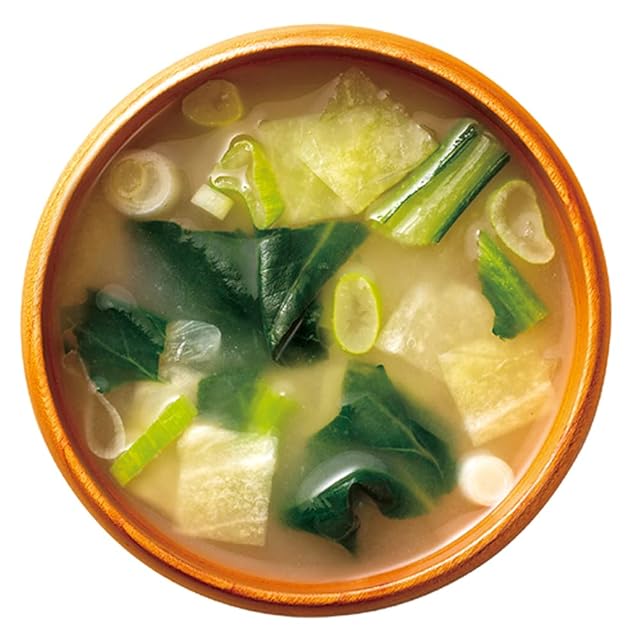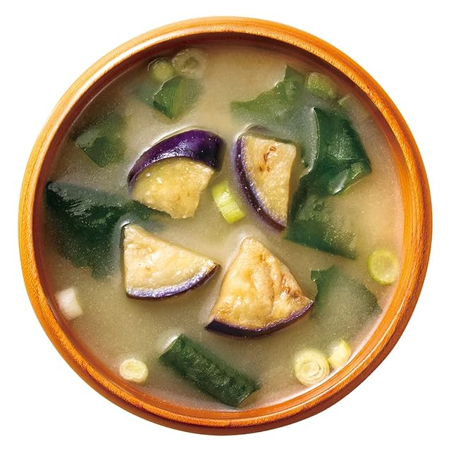 原材料:揚げなす汁:米みそ、揚げなす、ねぎ、食塩、わかめ、ばれいしょでん粉、かつお節エキス、かつお節粉末/調味料(アミノ酸等)、酸化防止剤(ビタミンE)、(一部に大豆を含む)とうふ汁:米みそ、とうふ、ねぎ、食塩、わかめ、ばれいしょでん粉、かつお節エキス、かつお節粉末/調味料(アミノ酸等)、豆腐用凝固剤、酸化防止剤(ビタミンE)、(一部に大豆を含む)長ねぎ汁:長ねぎ、米みそ、食塩、わかめ、ばれいしょでん粉、かつお節エキス、かつお節粉末/調味料(アミノ酸等)、酸化防止剤(ビタミンE)、(一部に大豆を含む)野菜汁:米みそ、キャベツ、長ねぎ、小松菜、食塩、ばれいしょでん粉、かつお節エキス、かつお節粉末/調味料(アミノ酸等)、酸化防止剤(ビタミンE)、(一部に大豆を含む)油あげ汁:米みそ、油あげ、ねぎ、食塩、わかめ、ばれいしょでん粉、かつお節エキス、かつお節粉末/調味料(アミノ酸等)、凝固剤、酸化防止剤(ビタミンE)、(一部に大豆を含む)