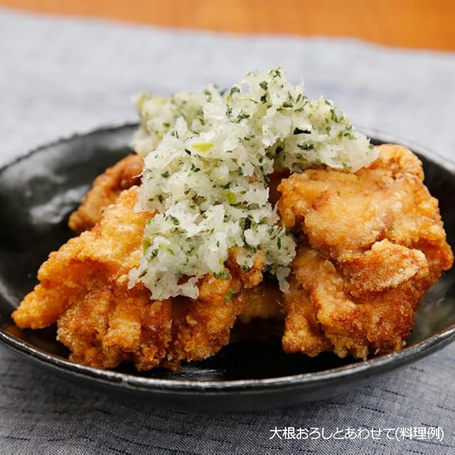 【原材料】塩蔵青菜(塩蔵大根葉(中国製造)、塩蔵京菜、塩蔵わさび葉)、砂糖、食塩、食用植物油脂、大豆食物繊維、チキンエキス、昆布エキス、鰹削り節粉末/調味料(アミノ酸等)、香料、(一部に大豆・鶏肉を含む)