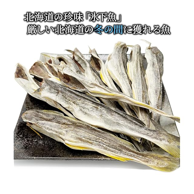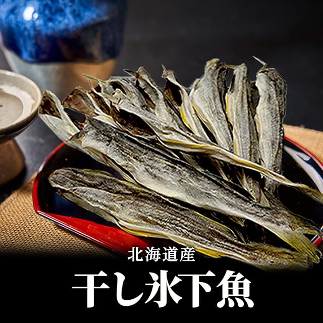 ✅北海道産の氷下魚(こまい)を干して作りました。 北海道では定番の珍味「氷下魚(こまい):別名カンカイ」です。 ✅氷下魚(こまい)とは、寒さの厳しい北海道の冬に獲れる魚で別名カンカイ(寒海)とも呼ばれていて 厳冬期に氷を割って漁獲(氷下待ち網漁)したことから、氷下魚と名付けられたそうです。 ✅乾燥した干し氷下魚は硬いのでトンカチで叩いて身をほぐしてから、むしってお召し上がり下さい。 食べ方は少し面倒だと感じるかもしれませんが最初から、むしってあるものより風味がとても良いのが特徴です。 ✅そのまま食べても美味しいですが、お好みでマヨネーズ、一味唐辛子を付けたり、軽くあぶったりしても美味しくお召し上がり頂けます。 ビールや日本酒などお酒好きな方にピッタリな珍味です。