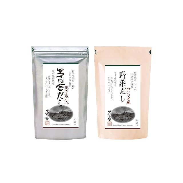 久原本家 茅乃舎だし 8g×30袋入 & 野菜だし 8g×24袋入 【組み合わせ 2個パック】 だしセット 和風だし 洋風だし 焼あご入り だしパック 出汁 博多 国産原料使用