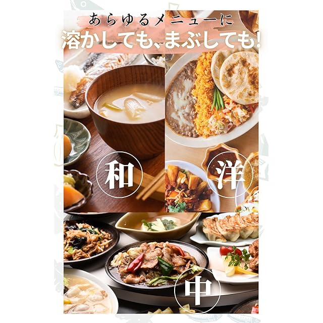 【洋風・中華にも】“和風だし”としてだけでなく“洋風”にも“中華”にもお使い頂けます。味噌汁やうどん、煮物、ポトフ、中華スープ、炊き込みご飯、野菜炒め、チャーハン、焼きそば、パスタ、おにぎり等、幅広い料理でお楽しみください。お湯を注ぎ、梅干しや塩をほんのひとつまみで“おいしいスープ”としてもおすすめです!