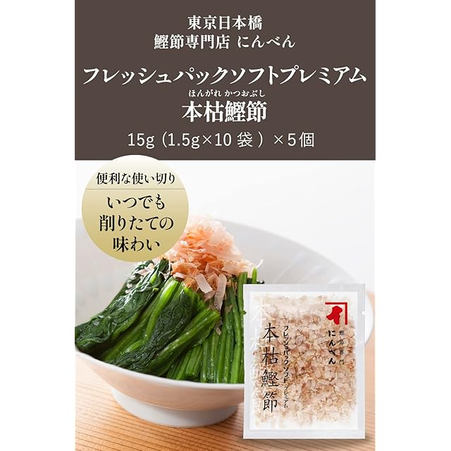 にんべん フレッシュパックソフトプレミアム 本枯鰹節 15g(1.5g×10袋)×5個(削り節 個包装)[ほんがれ かつおぶし 削りぶし] 1699年創業 鰹節・だし専門店のにんべん