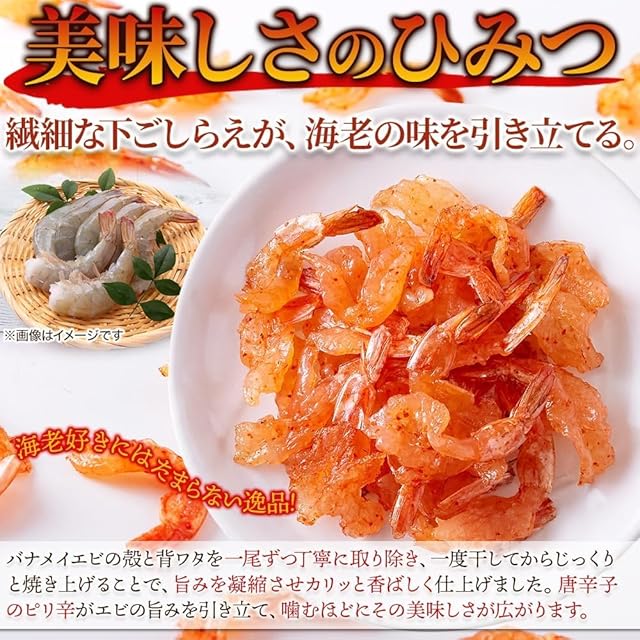 ✅【噛めば噛むほど海老の旨みが広がる!】海老の旨みをギュッと凝縮!極上ピリ辛風味の焼き海老。 海老好きにはたまらない!!旨辛焼き海老