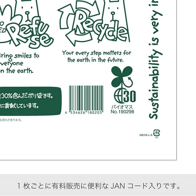 商品名:ヘッズ レジ袋 S 18×35×10cm 白 100枚 エコクマ バイオマス30 無料配布可 HEADS 30ECK-S