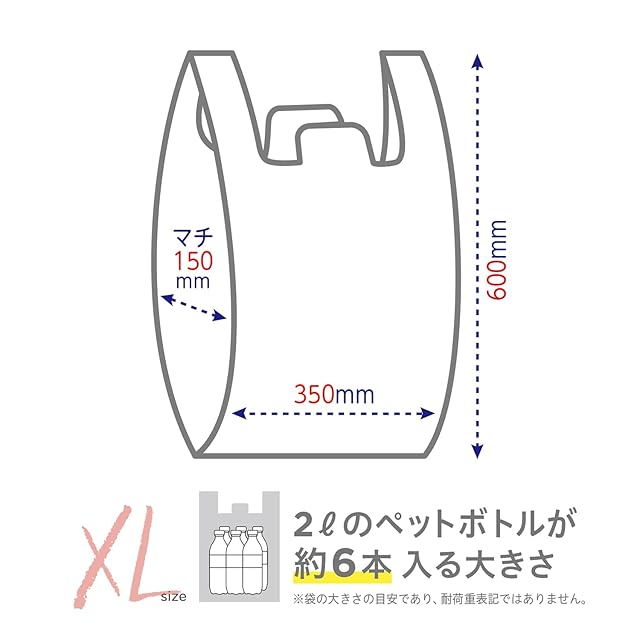 XLサイズ(1枚あたり):縦60cm×横35cm×マチ幅15cm 厚さ0.017mm
