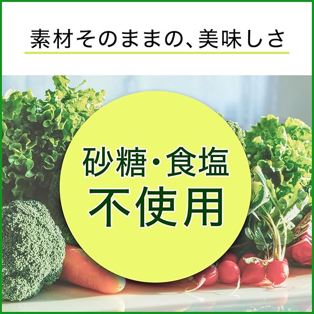 原材料:野菜汁(にんじん、トマト、赤ピーマン、きゅうり、インゲン豆、大根、ピーマン、メキャベツの葉、ケール、レタス、アスパラガス、カリフラワー、グリーンピース、冬瓜、緑豆スプラウト(もやし)、ブロッコリー、ゴーヤ、ごぼう、セロリ、モロヘイヤ、かぼちゃ、ヤーコン、あしたば、小松菜、パセリ、クレソン、キャベツ、ラディッシュ、ほうれん草、三つ葉)、レモン果汁、食物繊維、海藻カルシウム、ライスマグネシウム/ビタミンC 原料原産地:ポーランド又はアメリカ又はその他(にんじん)