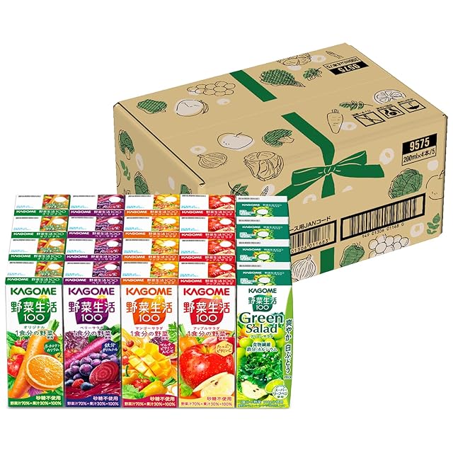 商品名:野菜生活 カゴメ 野菜生活100 アソートセット 200ml紙パック×20本(5種×各4本)【EC限定 飲み比べ お試しセット】