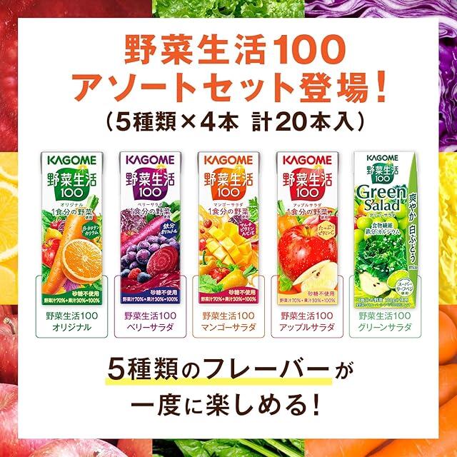 野菜生活 カゴメ 野菜生活100 アソートセット 200ml紙パック×20本(5種×各4本)【EC限定 飲み比べ お試しセット】