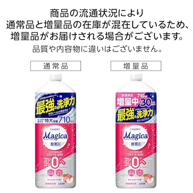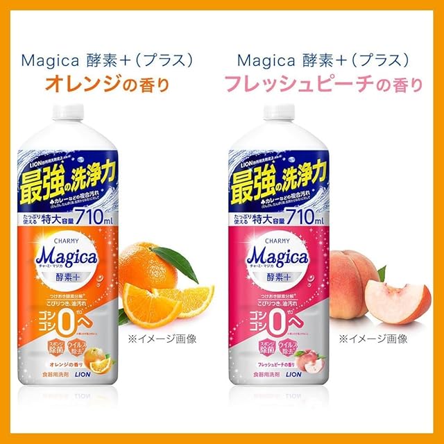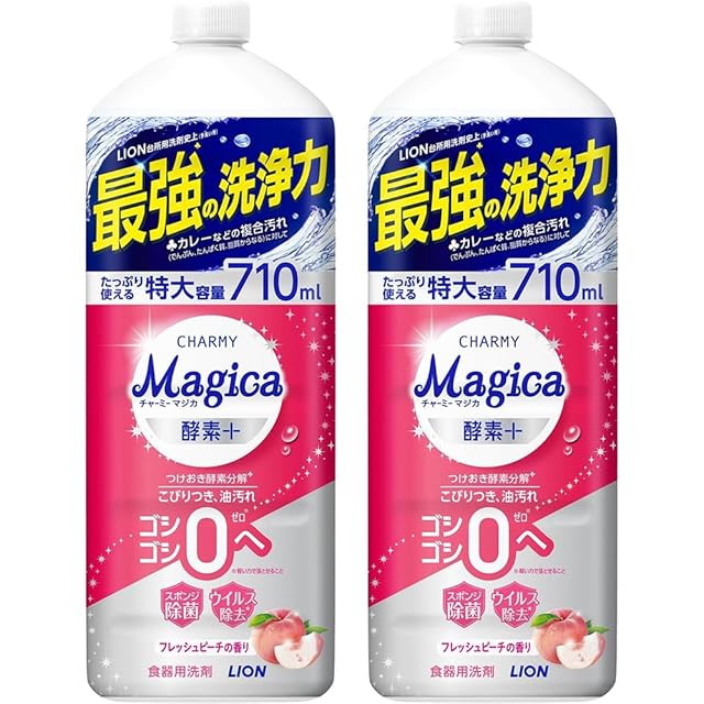 チャーミー マジカ(CHARMY Magica) 【まとめ買い 大容量】 チャーミーマジカ 食器用洗剤 酵素プラス フレッシュピーチの香り 詰替大型 710ml×2個