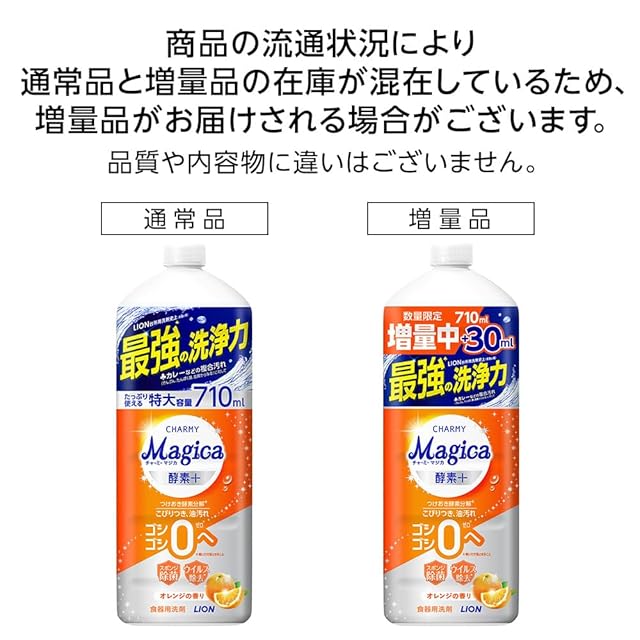 商品名:チャーミー マジカ(CHARMY Magica) 【まとめ買い 大容量】 チャーミーマジカ 食器用洗剤 酵素プラス オレンジの香り 詰替大型 710ml×2個