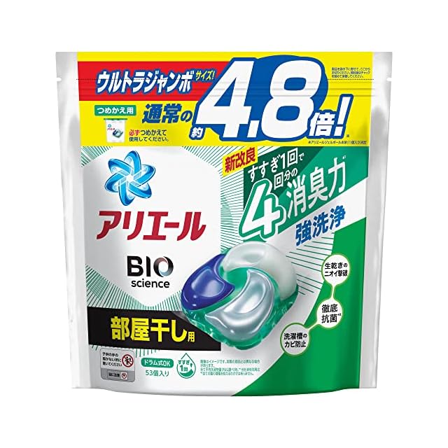 アリエール ジェルボール4D 洗濯洗剤 部屋干し 詰め替え ウルトラジャンボ 53個【.co.jp限定】