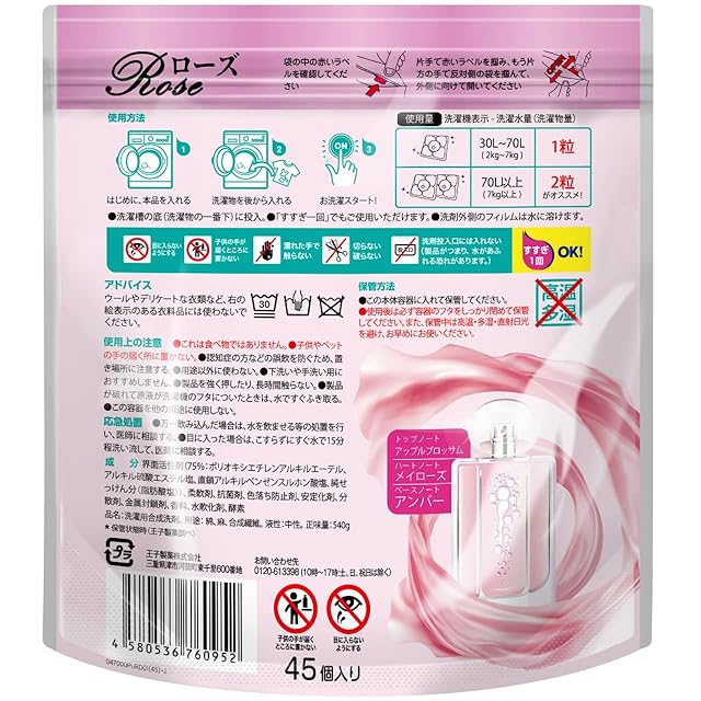 【韓国1.2億個販売突破】洗濯洗剤 アフューム arfum ローズ ROSE ジェル ボール型 5in1 柔軟剤入り 大容量 詰替(詰め替え) 日本製 (詰替45粒)