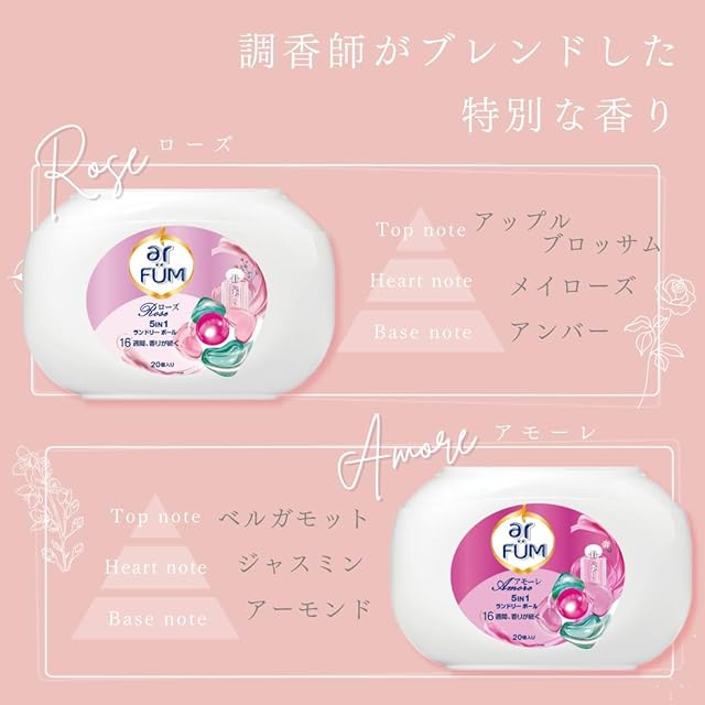 【韓国1.2億個販売突破】洗濯洗剤 アフューム arfum ローズ ROSE ジェル ボール型 5in1 柔軟剤入り 本体・ケース入り 日本製 (本体・ケース20粒)