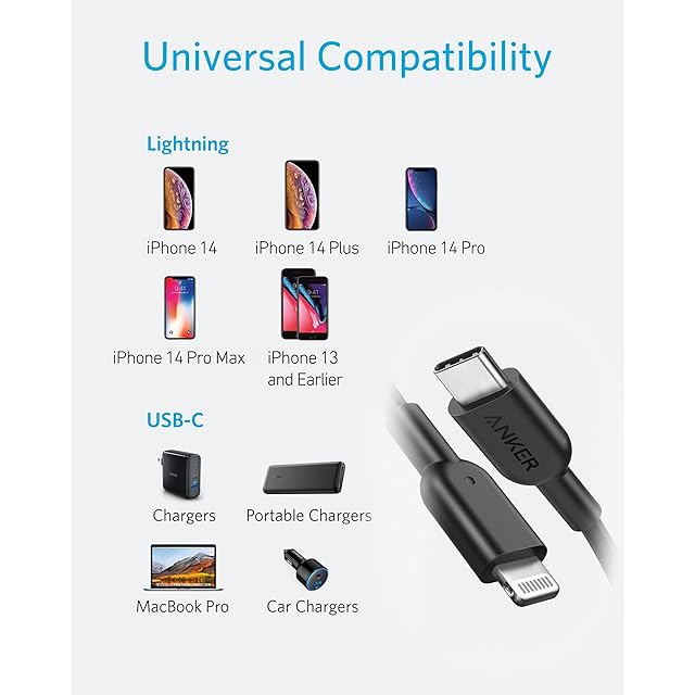 商品名:Anker PowerLine II USB-C & ライトニングケーブル MFi認証 USB PD対応 急速充電 iPhone 14 / 14 Plus / 14 Pro / 14 Pro Max / 13 / SE (第3世代) 各種対応 (1.8m ブラック)