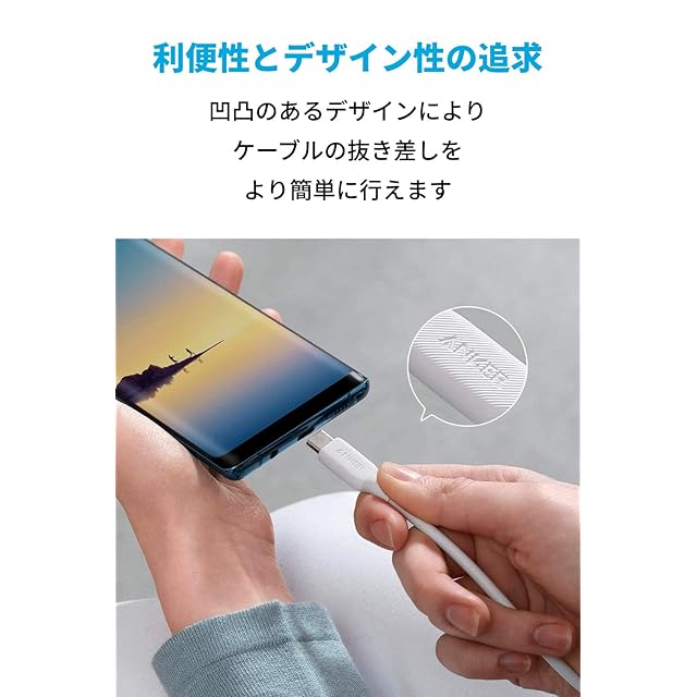 Anker PowerLine III USB-C & USB-C 2.0 ケーブル<br> お手入れ簡単!高耐久 & 極細のUSB-C & USB-C 2.0 ケーブル<br><br>主な製品仕様 <br>ケーブルの長さ:約1.8m <br>*ケーブルの長さは端子部分も含めて計測しております。<br><br> 極細設計 <br>ケーブル内部の構造を改良したことにより、Anker PowerLineシリーズが持つ強みを生かしながらも、シリーズ史上最も細い設計に仕上げました。 <br><br> フルスピード充電対応 <br>最大60Wの高出力で、USB-Cポートからスマートフォン、タブレット端末、ノートPC等のUSB-C機器にフルスピード充電が可能です。PD対応(18W)の充電器と共に使用することでSamsung S10にわずか30分で50%まで充電することが可能です。(充電器は別売です)<br><br> 進化したグリップ <br>長く、織り目加工のコネクタ部位はより快適にご使用いただけます。 <br><br> 使いやすいデザイン <br>ケーブルの長さが1.8mなので、リビングや寝室など様々な場所で長さを気にすることなく使用可能です。<br><br> ハイスピードデータ転送 <br>480 Mbpsのハイスピード転送により、動画や音楽、写真フォルダなどを数秒で転送できます。 <br><br> 対応機種(急速充電対応)<br> - iPad Pro 2018<br> - Galaxy Note 8<br> - Galaxy S8 / S8+ / S9 / S10 / S10+ / S10e<br> - Google Pixel 3/3a/4 XL<br> - Google Nexus 6P<br> - Huawei Matebook<br> - MacBook (2016 / 2019) / MacBook Air (2019) / MacBook Pro (2019 13インチ)<br> <br> 対応機種(急速充電 非対応)<br> - Google Nexus 5X<br> - MacBook Pro (2016 15インチ) / MacBook Pro (2019 15インチ)<br> - Lumia 950<br> - LG V20 / G5 / G6<br> - Xiaomi 5 <br> - Huawei Mate20 / Mate20 Pro<br> - Huawei P30 / P30 Pro<br>