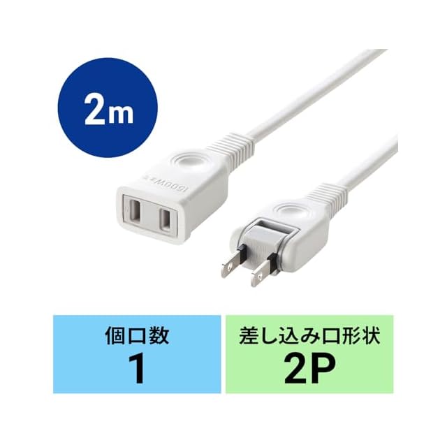 商品名:サンワサプライ 電源延長コード 2m トラッキング火災予防絶縁キャップ付きスイングプラグ TAP-EX2102 ホワイト