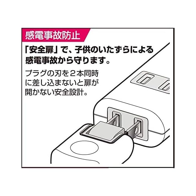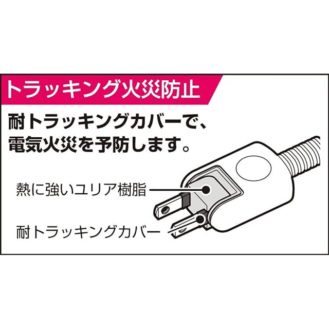 ●180°回転プラグ。耐トラッキングカバー付。 ●熱に強い。 ●使用していないコンセントの刃受口を封じて幼児のいたずらによる感電予防となります。 ●安全の保護被ふく