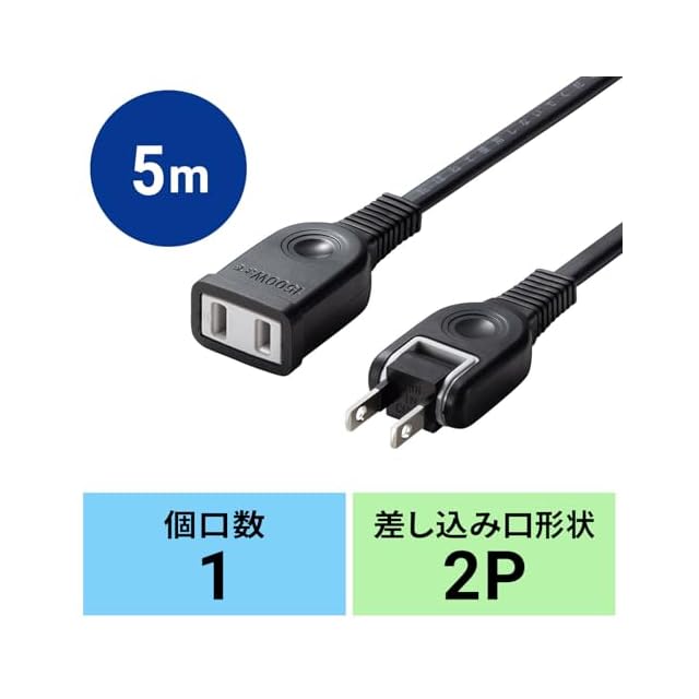 商品名:サンワサプライ 電源延長コード 5m 絶縁キャップ スイングプラグ トラッキング火災防止 ブラック TAP-EX2105BK
