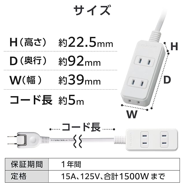 プラグ仕様は2ピン式で、コンパクトな3個口タイプです。