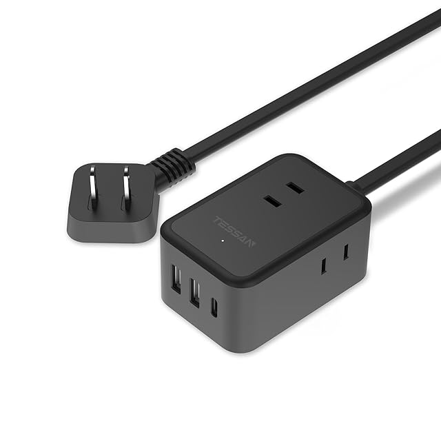 延長コード 2m 黒 薄型 電源タップ usb コンセントタップ たこあしコンセント テーブルタップ TESSAN 3個AC 1個タイプC 2個タイプA 電源コード type-c タコ足配線 隙間
