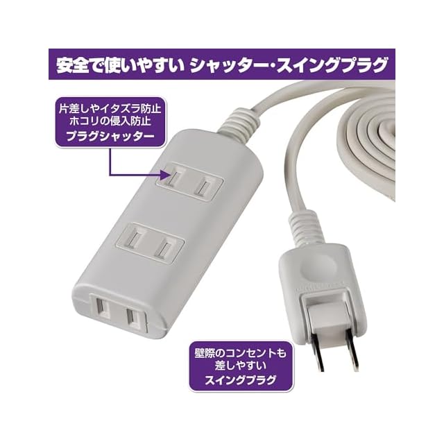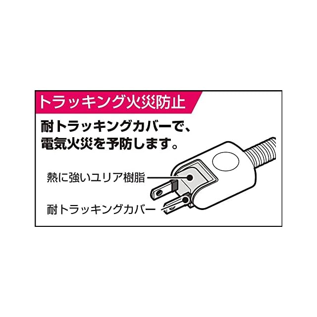 ●180°回転プラグ。耐トラッキングカバー付。 ●熱に強い。 ●使用していないコンセントの刃受口を封じて幼児のいたずらによる感電予防となります。 ●安全の保護被ふく