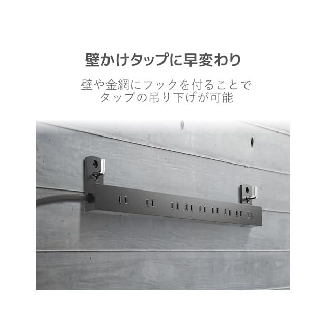 商品名:エレコム 電源タップ 雷ガード 10個口 3m ほこりシャッター 【 固定 ・吊下可能な回転パーツ付き】 ブラック ECT-0103BK