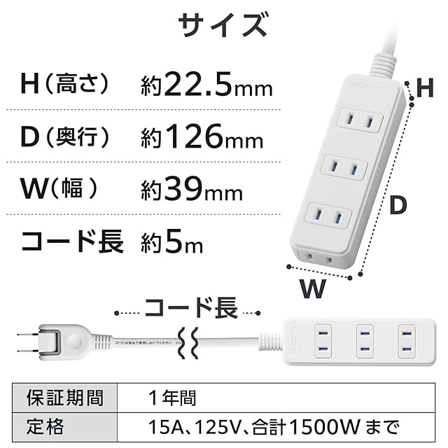 商品名:エレコム 電源タップ 雷ガード スウィングプラグ ほこりシャッター付 4個口 5m ホワイト T-KST02-22450WH