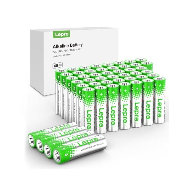 Lepro 単3形 アルカリ乾電池 48本セット ハイパワー 1.5V 2800mAh大容量 液漏れ防止 耐久 長持ち 長期間保存可能 乾電池式モバイルバッテリー おもちゃ 電池式ランタン 懐中電灯 時計 リモコン 携帯ラジオ 防災用 LR6 [PR130002-48]