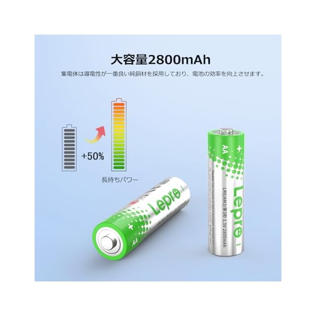 Lepro 単3形 アルカリ乾電池 100本セット ハイパワー 1.5V 2800mAh大容量 液漏れ防止 耐久 長持ち 長期間保存可能 乾電池式モバイルバッテリー おもちゃ 電池式ランタン 懐中電灯 時計 リモコン 携帯ラジオ 防災用 LR6 [PR130002-100]