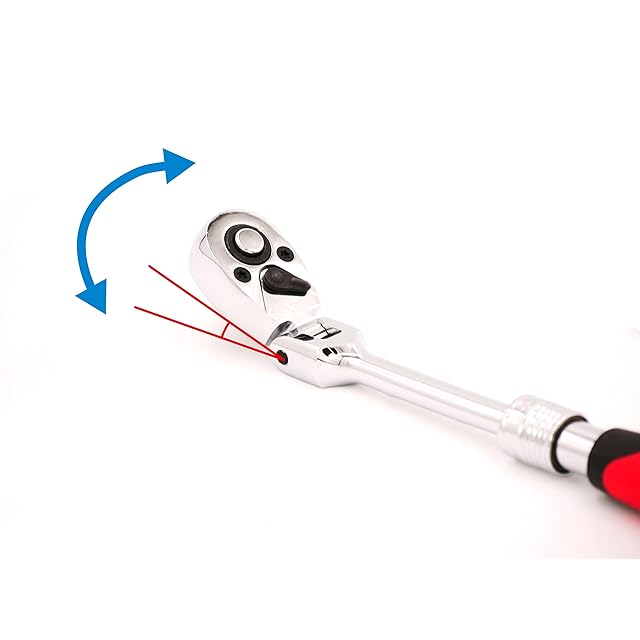 商品名:エマーソン(Emerson) フレックス伸縮式ラチェットハンドル 自転車からバイク、自動車まで幅広く使える 差込角 9.5mm(3/8インチ) 伸縮式4段階 18度ずつ10段階(180度首振り) 72枚ギア 送り角度5°で作動 ワンプッシュリリース式機構でワンタッチで着脱 250mm/285mm/315mm/350mmの4段伸縮 ラチェットレンチ ソケットレンチ EM-280