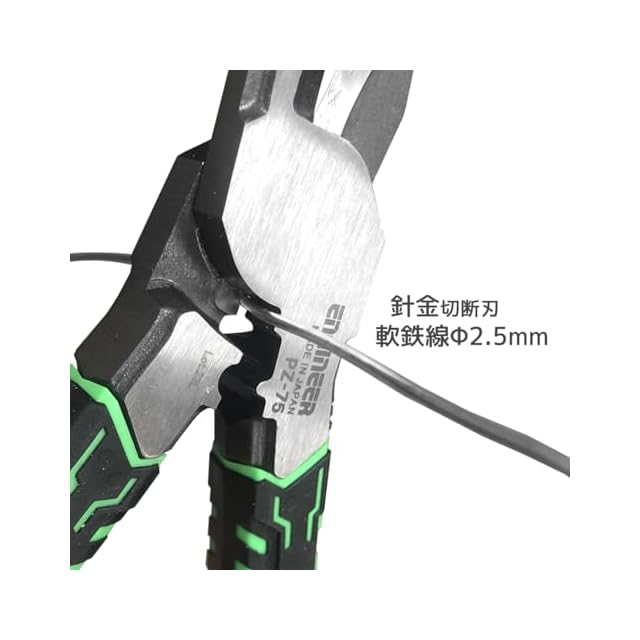切断能力:銅線切断刃/VVF線(2.6mm×3C)・IV線(22mm2)・針金切断刃/軟鉄線(φ2.5mm)・ステンレス線(φ1.6mm)