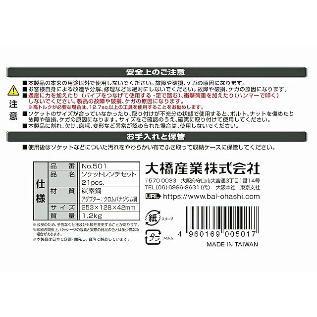 BAL(大橋産業) 車 整備 工具 ソケット ラチェット レンチセット 21PC No.501